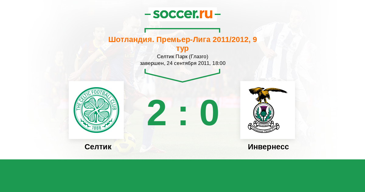 Шотландия. Премьер-Лига 11.02.2012 Селтик Логотип футбольный клуб Селтик (Глазго) 1:0 Логотип футбольный клуб Инвернесс Инвернесс