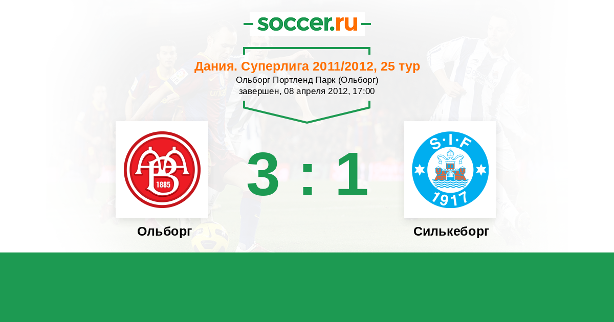 Дания. Суперлига 03.12.2011 Силькеборг Логотип футбольный клуб Силькеборг 4:2 Логотип футбольный клуб Ольборг Ольборг