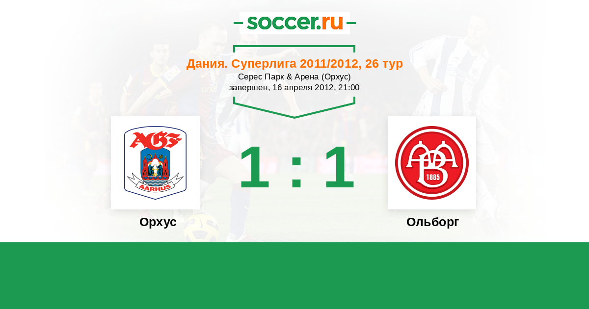 Дания. Суперлига 13.07.2012 Орхус Логотип футбольный клуб Орхус 1:1 Логотип футбольный клуб Ольборг Ольборг