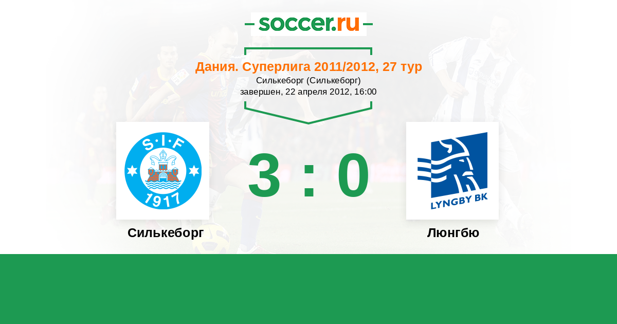 Дания. Суперлига 18.09.2011 Люнгбю Логотип футбольный клуб Люнгбю (Конгес Люнгбю) 0:2 Логотип футбольный клуб Силькеборг Силькеборг