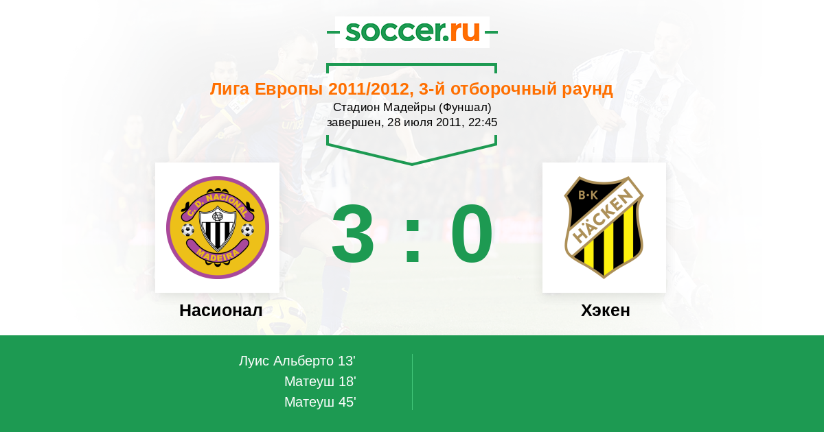 Протокол матча Насионал против Хэкен