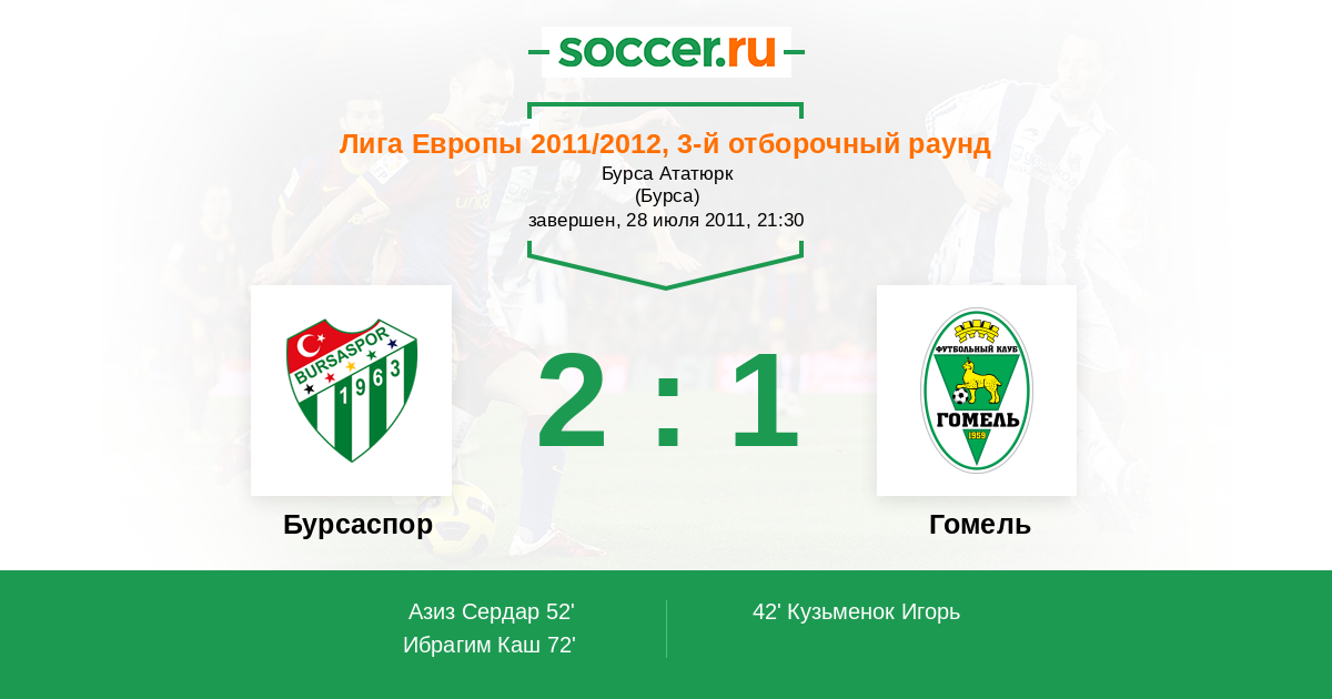 Протокол матча Бурсаспор против Гомель