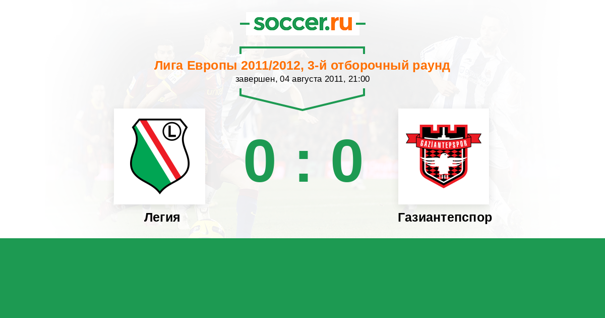 Протокол матча Легия против Газиантепспор