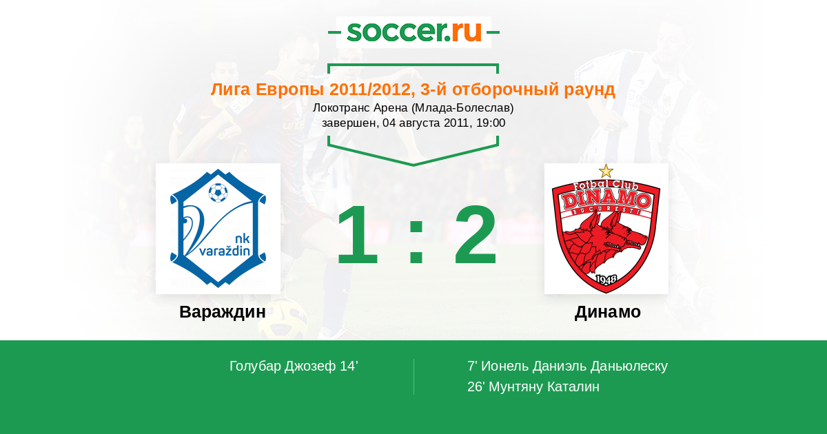 Протокол матча Вараждин против Динамо