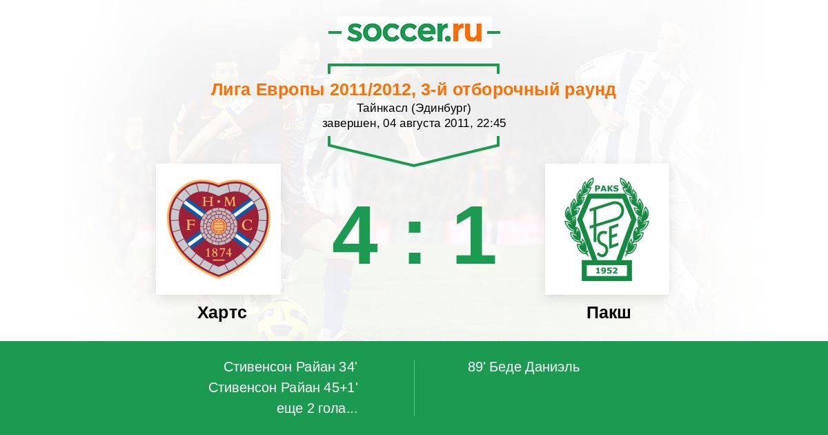 Протокол матча Хартс против Пакш