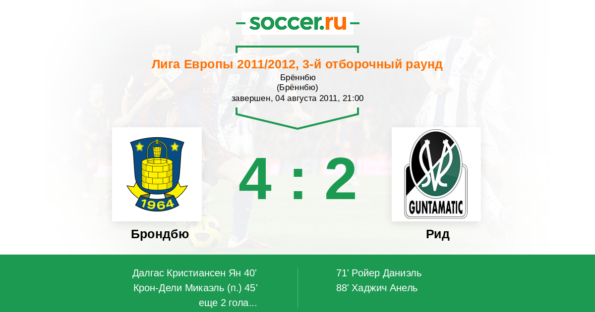 Протокол матча Брондбю против Рид