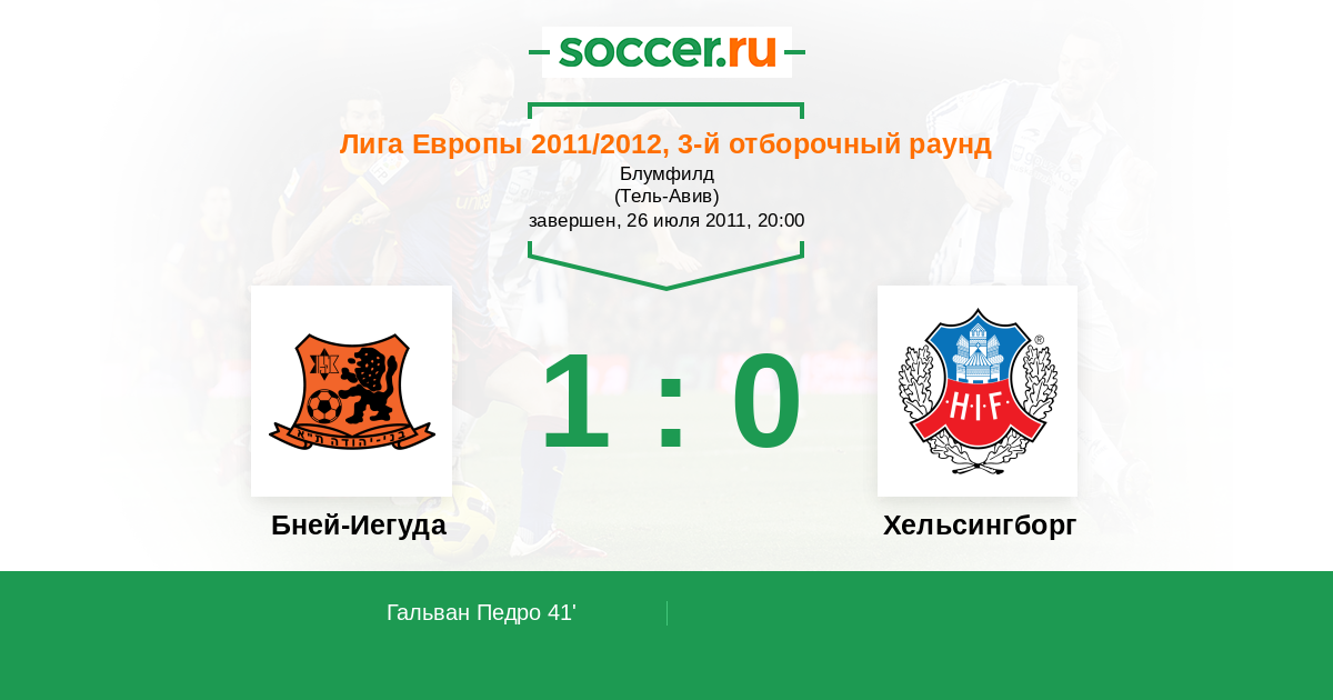 Протокол матча Бней-Иегуда против Хельсингборг