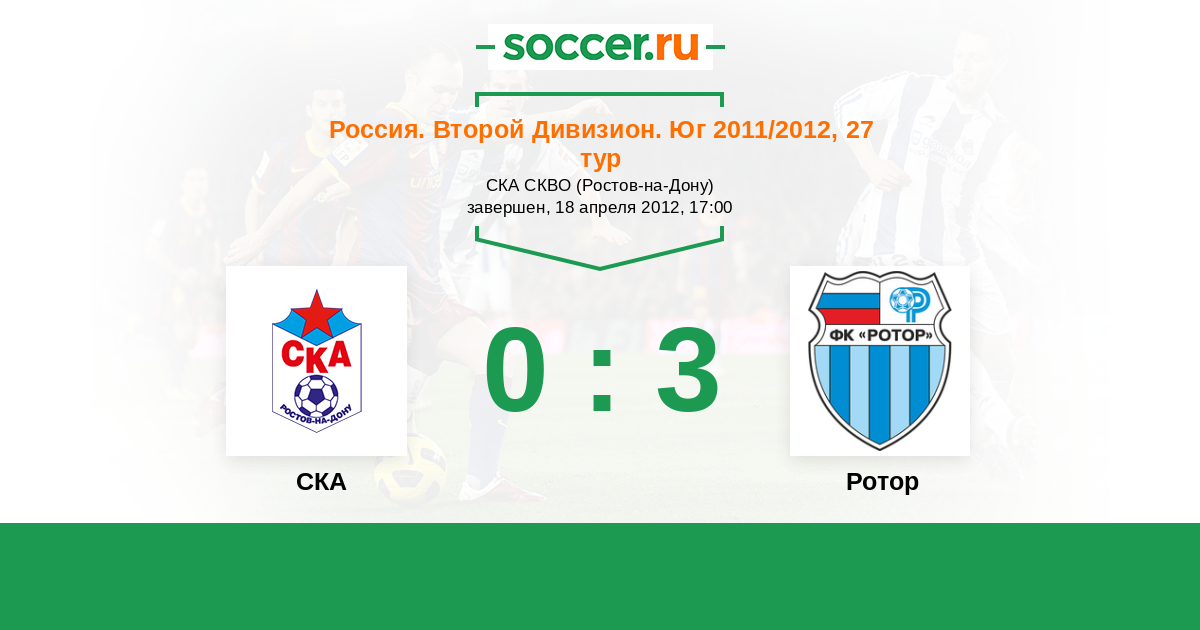 Россия. Вторая лига. Группа 1 06.07.2011 Ротор Логотип футбольный клуб Ротор (Волгоград) 3:0 Логотип футбольный клуб СКА (Ростов-на-Дону) СКА