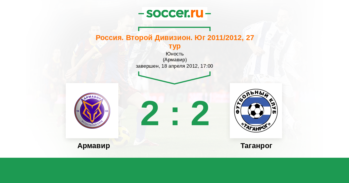 Россия. Вторая лига. Группа 1 08.07.2011 Таганрог Логотип футбольный клуб Таганрог 0:1 Логотип футбольный клуб Торпедо Армавир Торпедо Армавир
