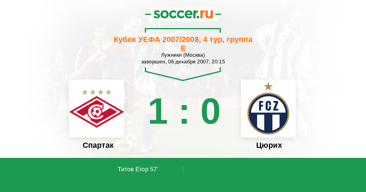 Протокол матча Спартак против Цюрих