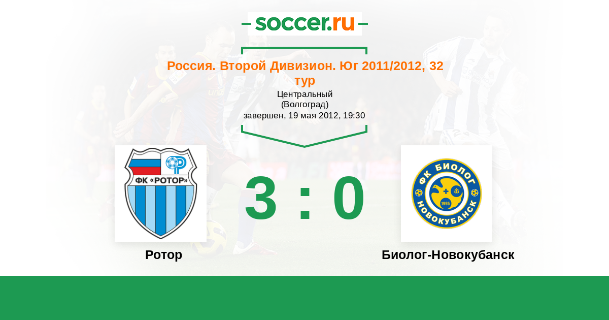 Россия. Вторая лига. Группа 1 21.08.2011 Биолог-Новокубанск Логотип футбольный клуб Биолог-Новокубанск 0:1 Логотип футбольный клуб Ротор (Волгоград) Ротор