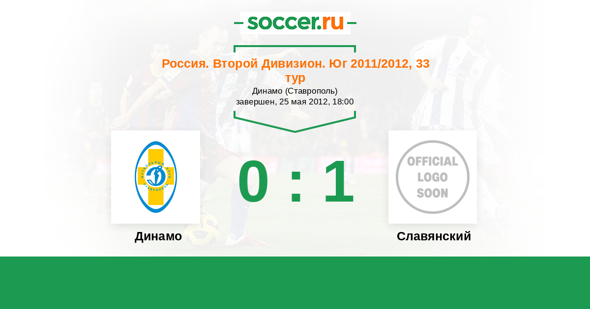Россия. Вторая лига. Группа 1 28.08.2011 Славянский Логотип футбольный клуб Славянский (Славянск-на-Кубани) 0:0 Логотип футбольный клуб Динамо Ставрополь Динамо Ставрополь
