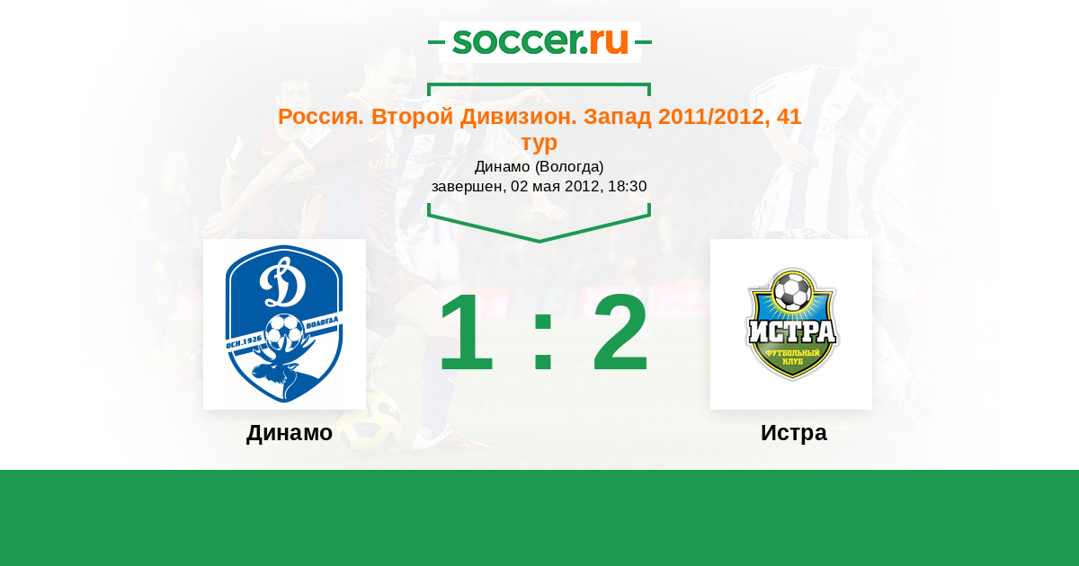 Россия. Вторая лига. Группа 2 02.05.2012 Динамо Вологда Логотип футбольный клуб Динамо Вологда 1:2 Логотип футбольный клуб Истра Истра