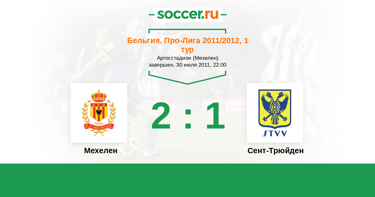 Бельгия. Про-Лига 02.04.2011 Мехелен Логотип футбольный клуб Мехелен 1:1 Логотип футбольный клуб Сент-Трюйден (Синт-Трёйден) Сент-Трюйден