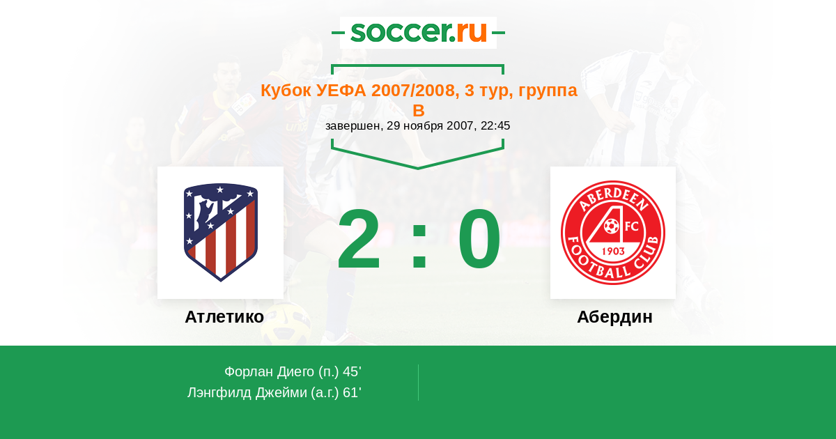 Протокол матча Атлетико против Абердин