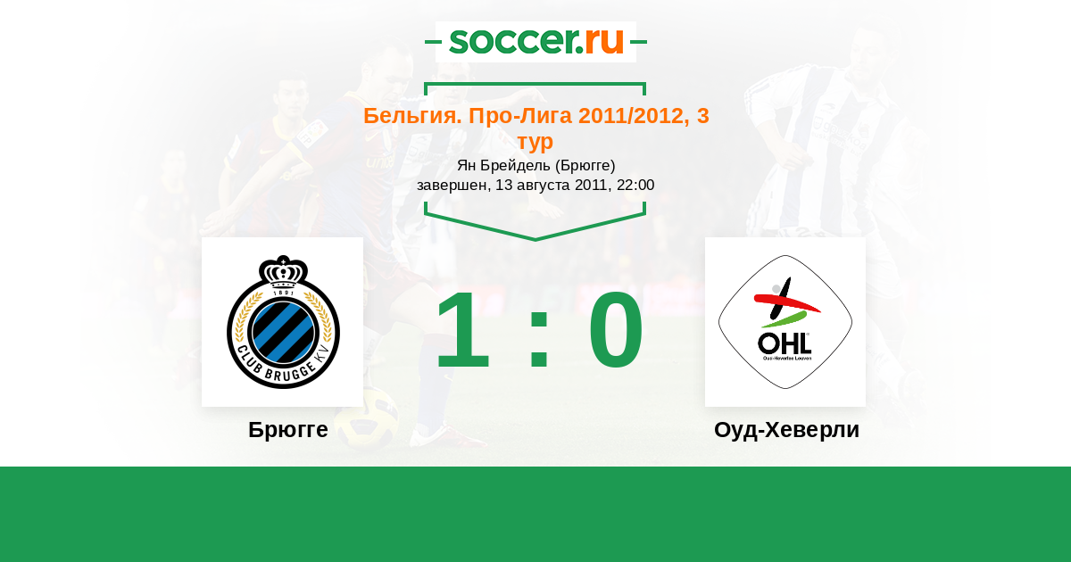 Бельгия. Про-Лига 18.12.2011 Оуд-Хеверли Логотип футбольный клуб Оуд-Хеверли (Левен) 3:1 Логотип футбольный клуб Брюгге Брюгге