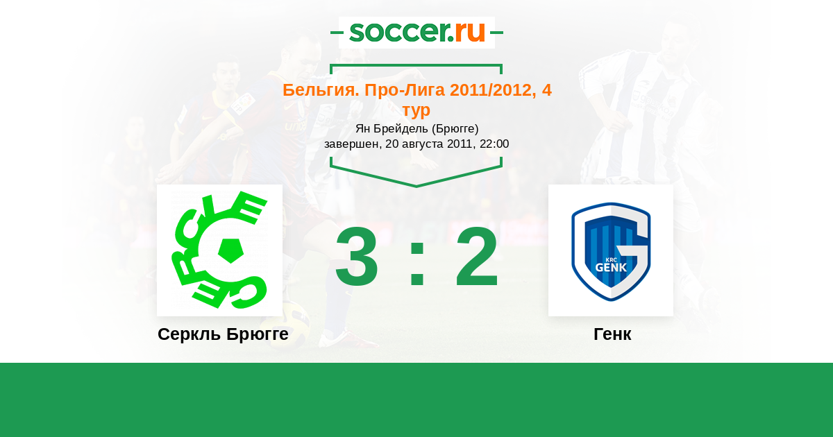 Бельгия. Про-Лига 26.12.2011 Генк Логотип футбольный клуб Генк 4:2 Логотип футбольный клуб Серкль Брюгге Серкль Брюгге