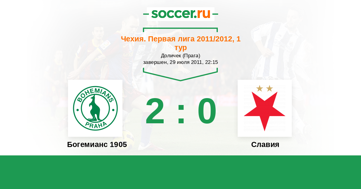 Чехия. Первая Лига 16.07.2010 Богемианс 1905 Логотип футбольный клуб Богемианс 1905 (Прага) 1:1 Логотип футбольный клуб Славия (Прага) Славия