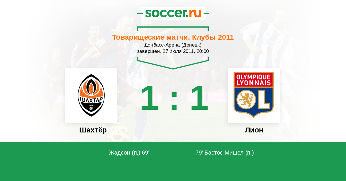 Протокол матча Шахтёр против Лион