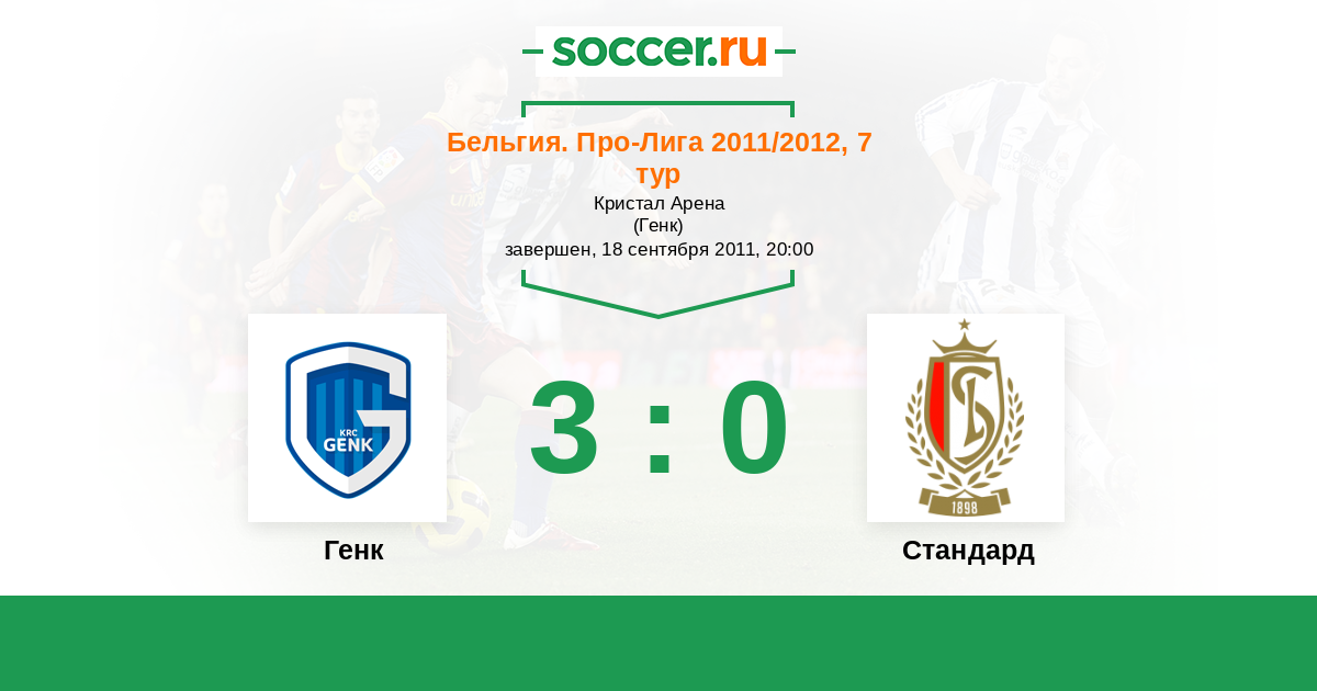 Бельгия. Про-Лига 18.12.2011 Стандард Логотип футбольный клуб Стандард (Льеж) 0:0 Логотип футбольный клуб Генк Генк