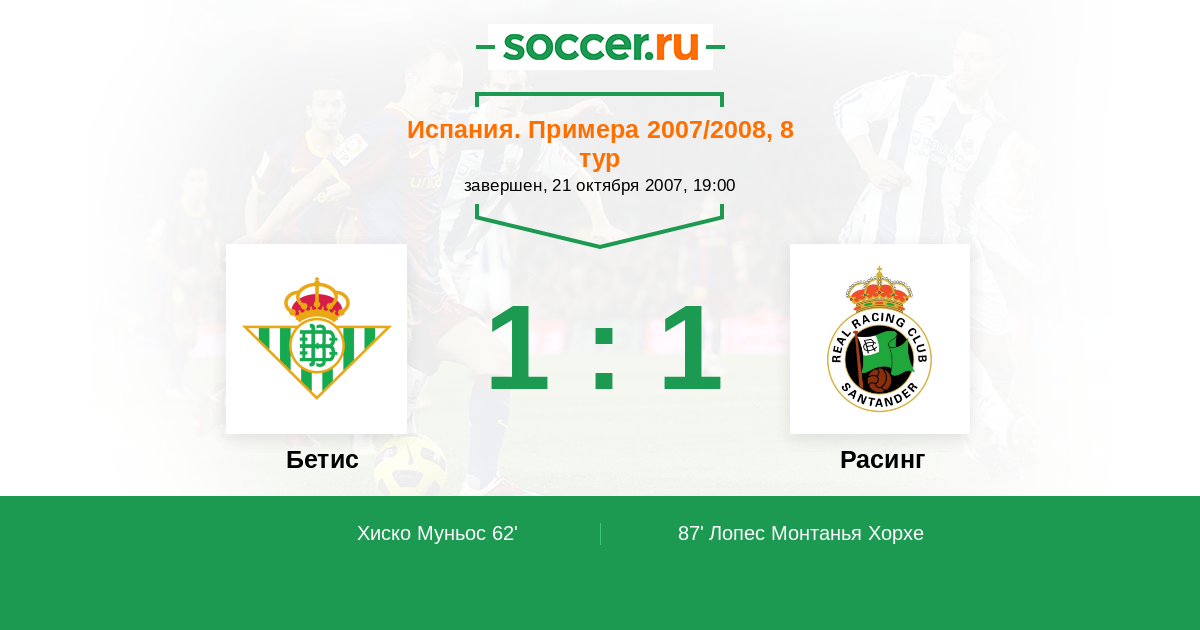 Протокол матча Бетис против Расинг