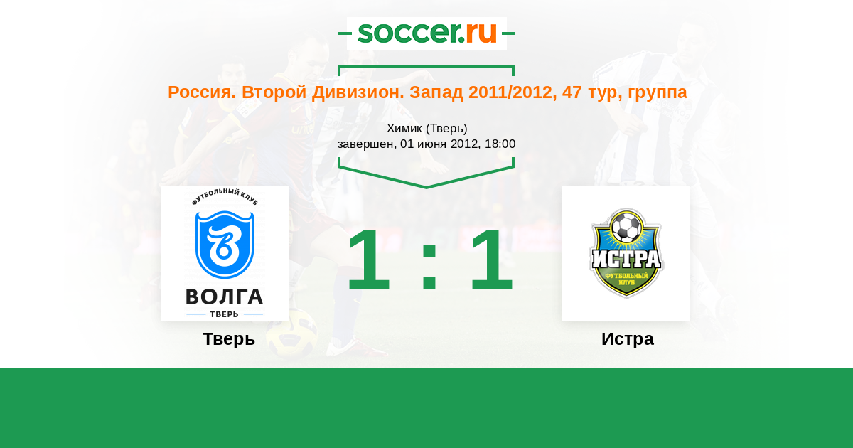 Россия. Вторая лига. Группа 2 01.06.2012 Тверь Логотип футбольный клуб Тверь 1:1 Логотип футбольный клуб Истра Истра