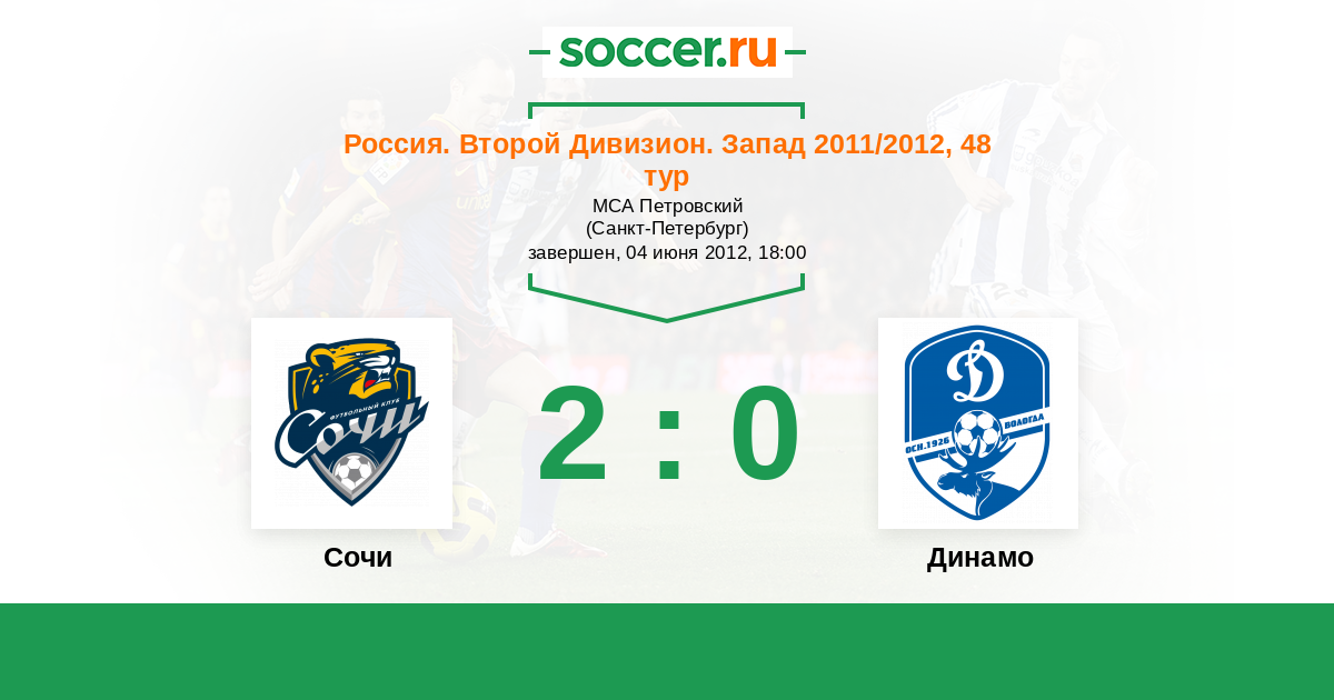 Россия. Вторая лига. Группа 2 03.07.2011 Петротрест Логотип футбольный клуб Петротрест (Сочи) 0:1 Логотип футбольный клуб Динамо Вологда Динамо Вологда