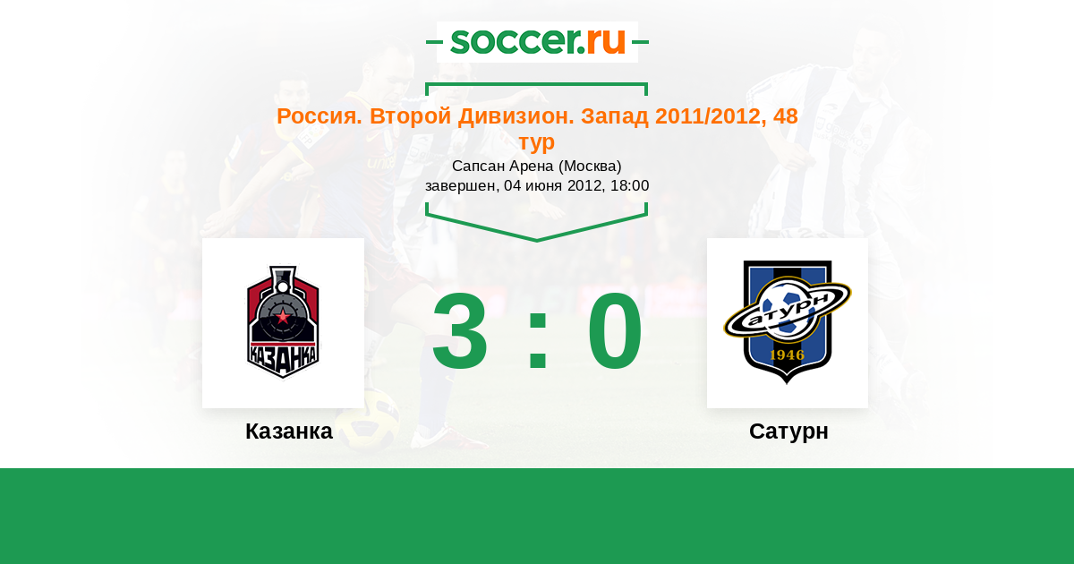 Россия. Вторая лига. Группа 2 30.06.2011 Локомотив-2 Логотип футбольный клуб Локомотив-2 (Москва) 3:2 Логотип футбольный клуб Сатурн (Раменское) Сатурн