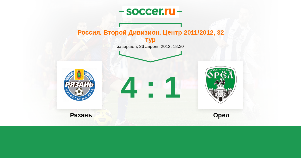 Россия. Вторая лига. Группа 3 26.04.2017 Рязань Логотип футбольный клуб Рязань 3:0 Логотип футбольный клуб Орел Орел