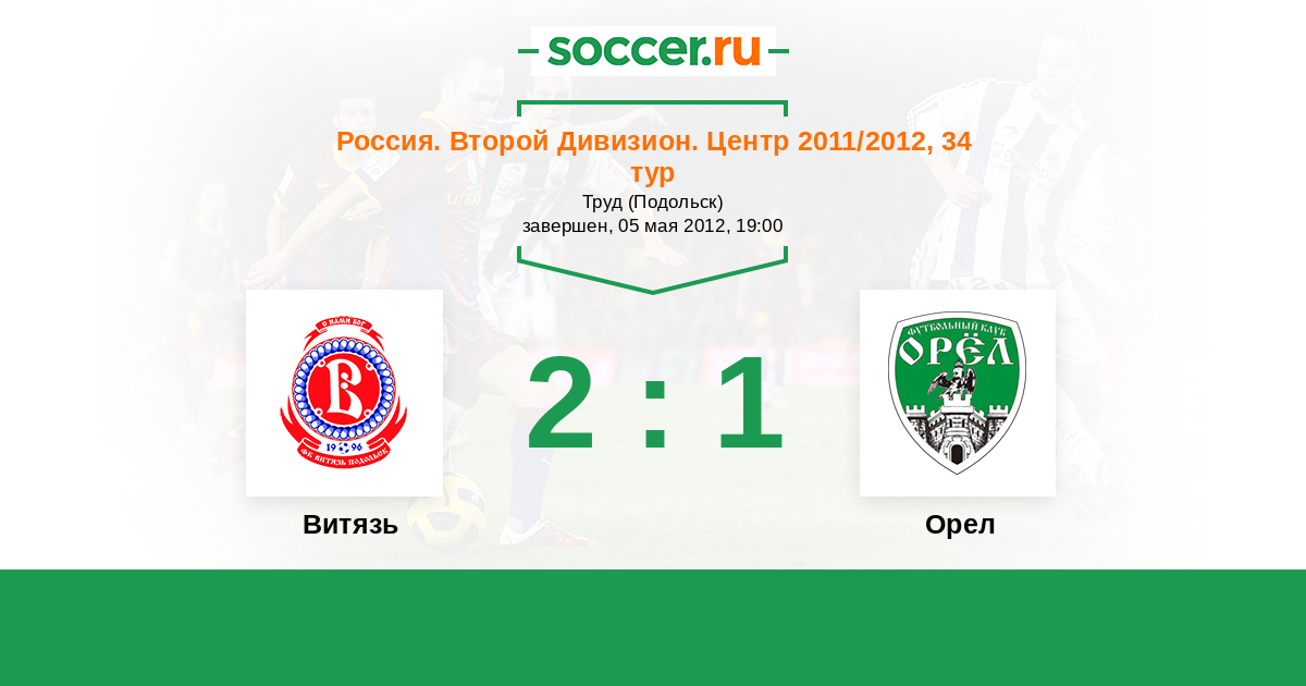 Россия. Вторая лига. Группа 3 19.05.2010 Витязь Логотип футбольный клуб Витязь (Подольск) 2:1 Логотип футбольный клуб Орел Орел