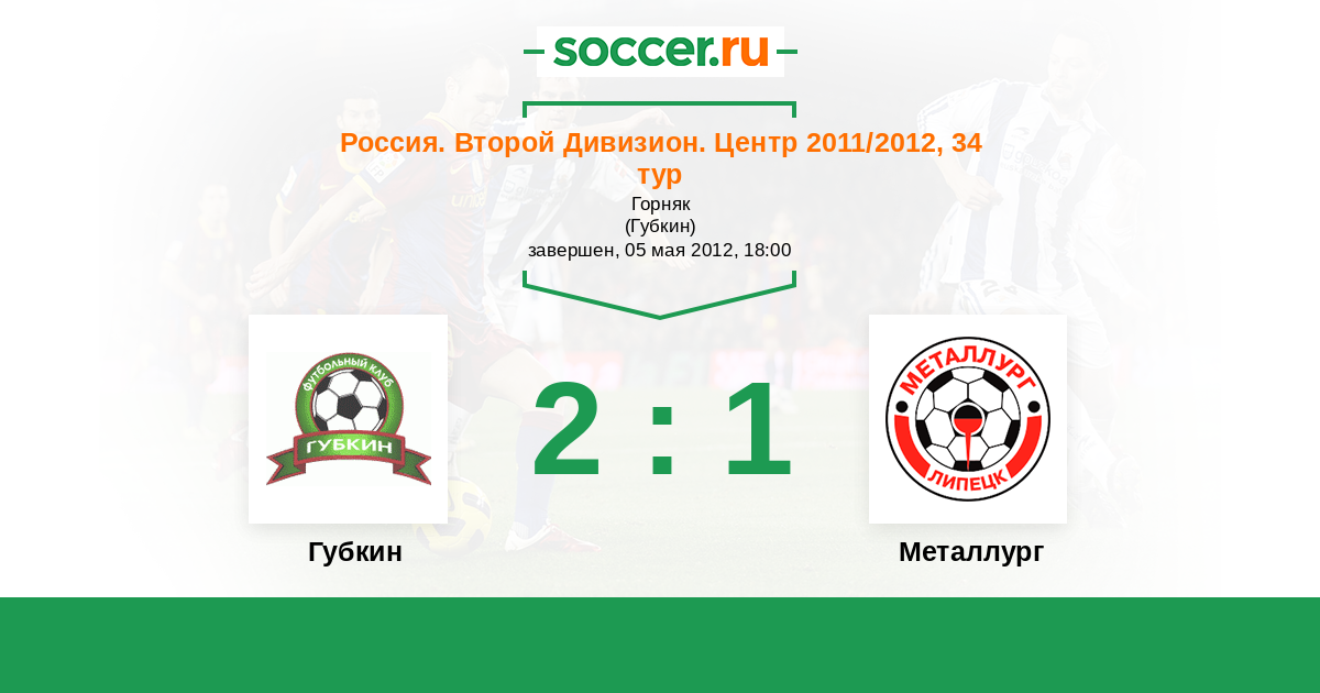 Россия. Вторая лига. Группа 3 03.06.2011 Губкин Логотип футбольный клуб Губкин 2:1 Логотип футбольный клуб Металлург (Липецк) Металлург