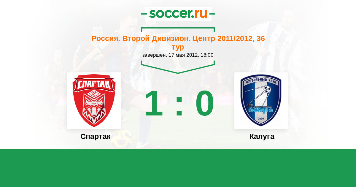 Россия. Вторая лига. Группа 3 17.06.2011 Спартак Логотип футбольный клуб Спартак (Тамбов) 1:1 Логотип футбольный клуб Калуга Калуга