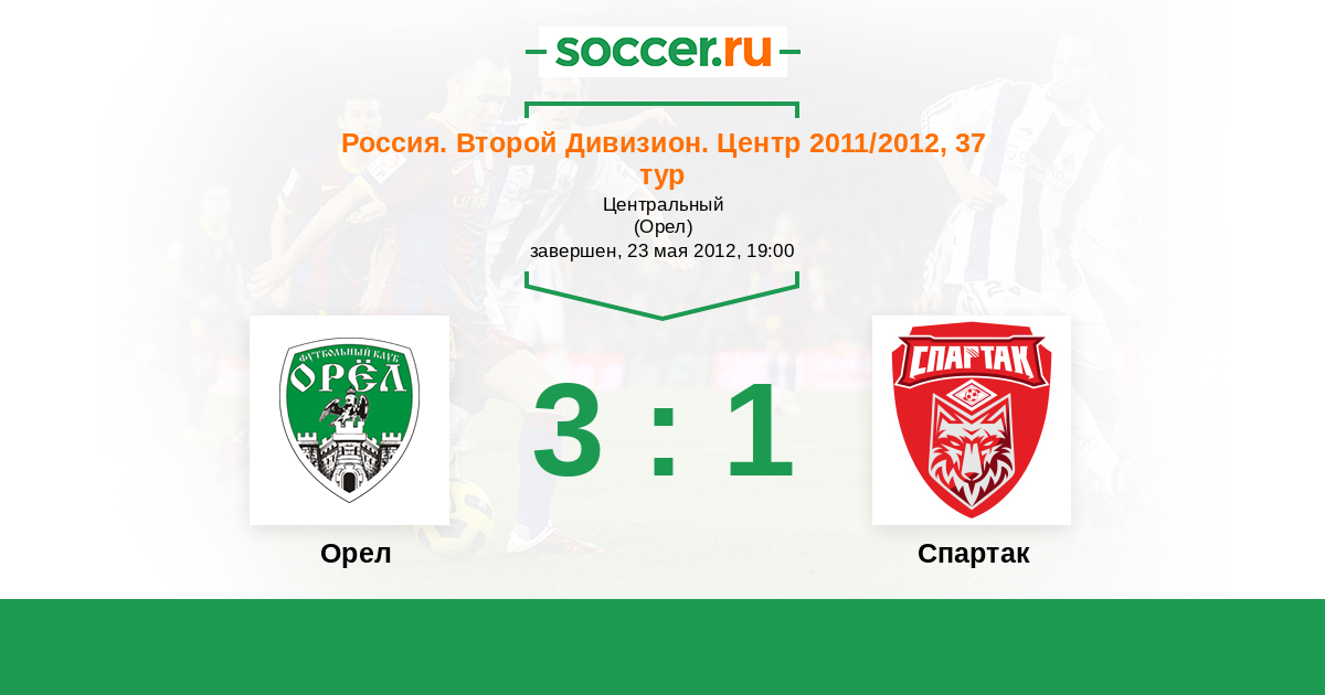 Россия. Вторая лига. Группа 3 23.06.2011 Орел Логотип футбольный клуб Орел 2:0 Логотип футбольный клуб Спартак (Тамбов) Спартак