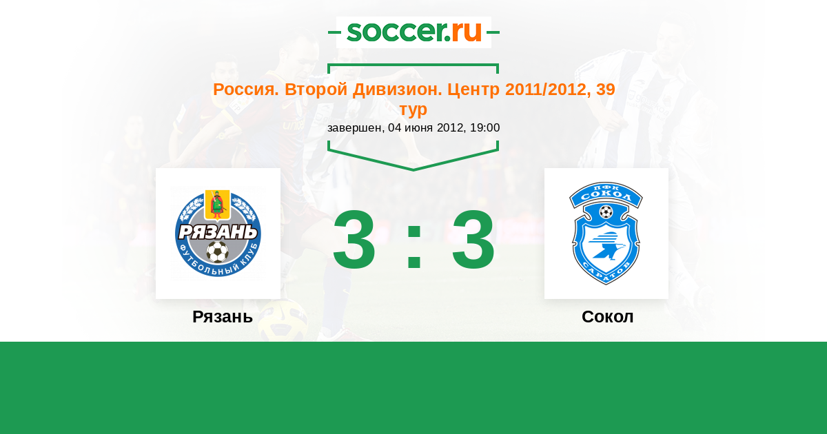 Россия. Вторая лига. Группа 3 29.09.2011 Сокол Логотип футбольный клуб Сокол (Саратов) 1:1 Логотип футбольный клуб Звезда Рз (Рязань) Звезда Рз