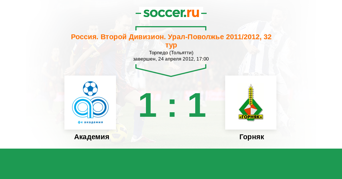 Россия. Вторая лига. Группа 4 16.08.2011 Горняк Логотип футбольный клуб Горняк (Учалы) 2:1 Логотип футбольный клуб Академия (Тольятти) Академия