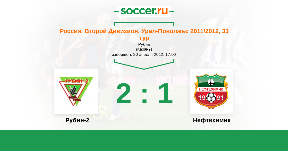 Россия. Вторая лига. Группа 4 30.05.2011 Рубин-2 Логотип футбольный клуб Рубин-2 (Казань) 3:2 Логотип футбольный клуб Нефтехимик (Нижнекамск) Нефтехимик