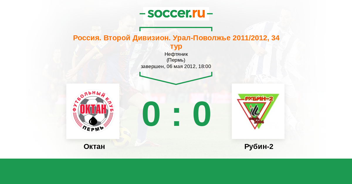 Россия. Вторая лига. Группа 4 06.05.2013 Рубин-2 Логотип футбольный клуб Рубин-2 (Казань) 0:0 Логотип футбольный клуб Октан (Пермь) Октан