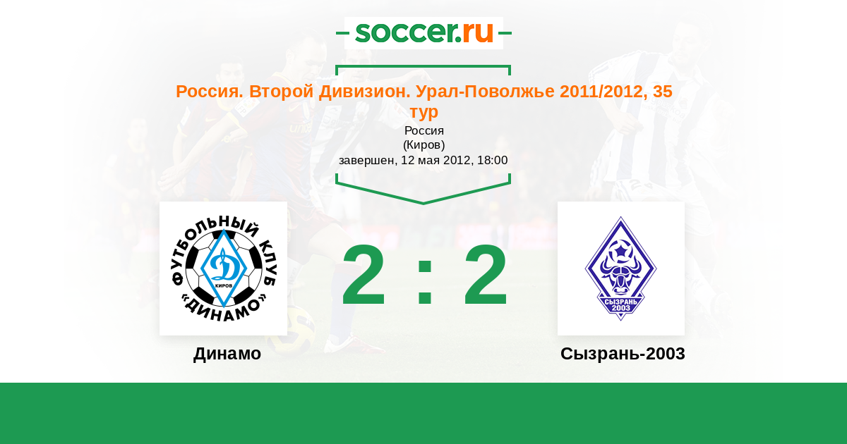 Россия. Вторая лига. Группа 4 03.09.2011 Сызрань-2003 Логотип футбольный клуб Сызрань-2003 1:1 Логотип футбольный клуб Динамо Киров Динамо Киров