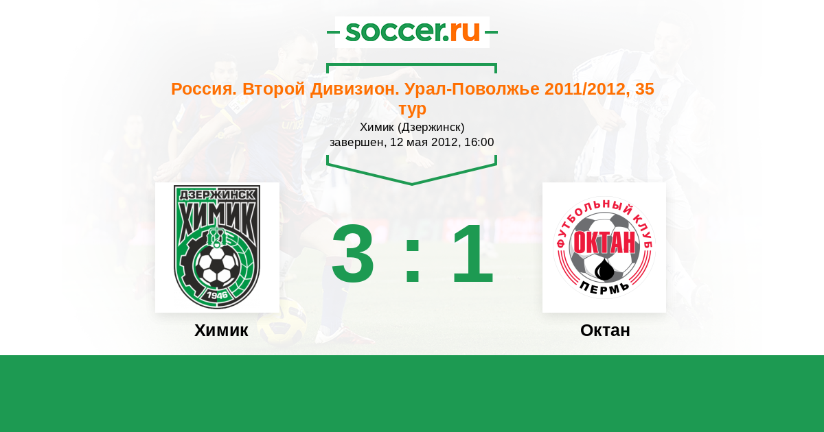 Россия. Вторая лига. Группа 4 12.06.2011 Химик Логотип футбольный клуб Химик (Дзержинск) 2:1 Логотип футбольный клуб Октан (Пермь) Октан