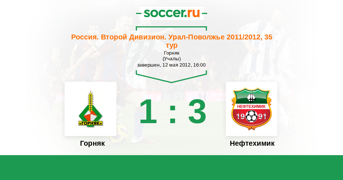 Россия. Вторая лига. Группа 4 12.06.2011 Горняк Логотип футбольный клуб Горняк (Учалы) 2:1 Логотип футбольный клуб Нефтехимик (Нижнекамск) Нефтехимик