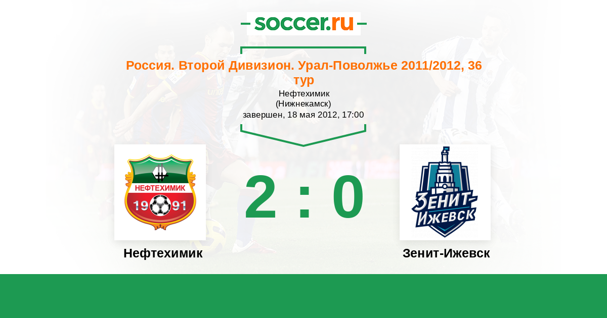 Россия. Вторая лига. Группа 4 17.06.2011 Нефтехимик Логотип футбольный клуб Нефтехимик (Нижнекамск) 2:1 Логотип футбольный клуб Зенит-Ижевск Зенит-Ижевск