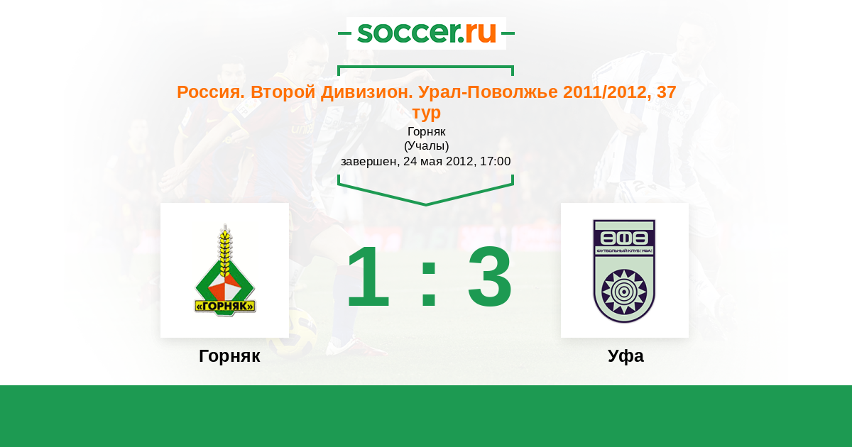 Россия. Вторая лига. Группа 4 24.06.2011 Горняк Логотип футбольный клуб Горняк (Учалы) 0:0 Логотип футбольный клуб Уфа Уфа