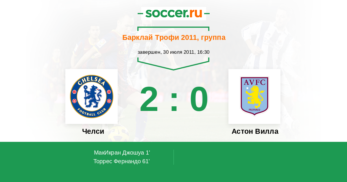 Протокол матча Челси против Астон Вилла