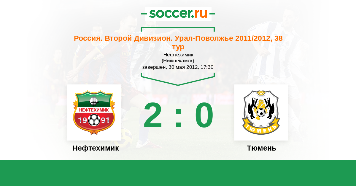 Россия. Вторая лига. Группа 4 30.06.2011 Нефтехимик Логотип футбольный клуб Нефтехимик (Нижнекамск) 3:1 Логотип футбольный клуб Тюмень Тюмень
