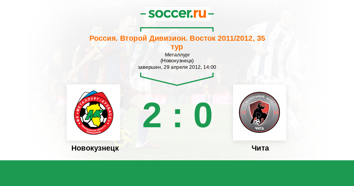 Россия. 2-й дивизион. Восток 18.08.2011 Чита Логотип футбольный клуб Чита 1:0 Логотип футбольный клуб Металлург-Кузбасс (Новокузнецк) Металлург-Кузбасс