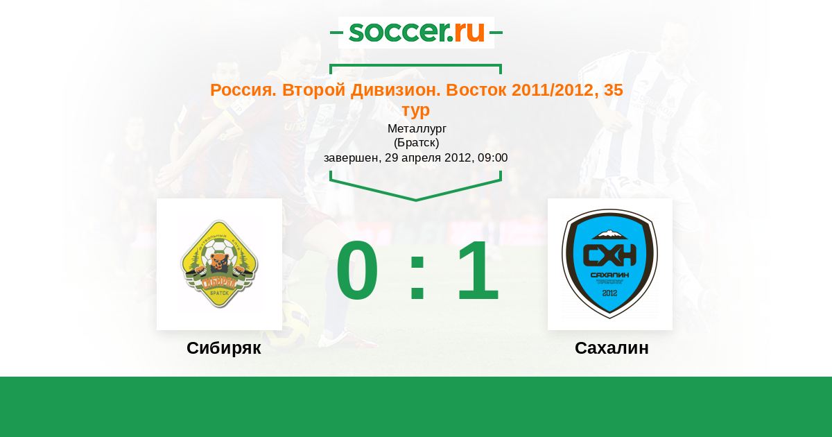 Россия. 2-й дивизион. Восток 05.08.2012 Сибиряк Логотип футбольный клуб Сибиряк (Братск) 2:2 Логотип футбольный клуб Сахалин (Южно-Сахалинск) Сахалин