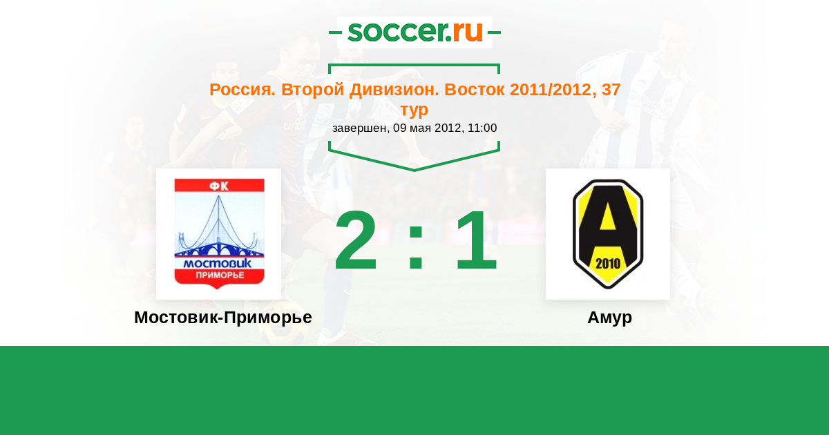 Россия. 2-й дивизион. Восток 09.05.2012 Мостовик-Приморье Логотип футбольный клуб Мостовик-Приморье (Уссурийск) 2:1 Логотип футбольный клуб Амур  (Благовещенск) Амур