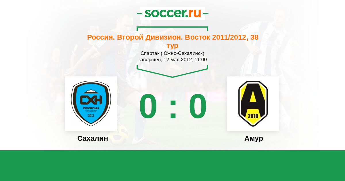 Россия. 2-й дивизион. Восток 27.07.2012 Сахалин Логотип футбольный клуб Сахалин (Южно-Сахалинск) 1:1 Логотип футбольный клуб Амур  (Благовещенск) Амур
