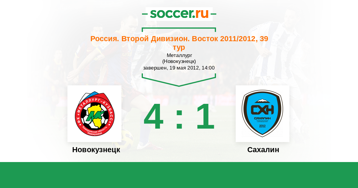 Россия. 2-й дивизион. Восток 24.07.2011 Сахалин Логотип футбольный клуб Сахалин (Южно-Сахалинск) 2:0 Логотип футбольный клуб Металлург-Кузбасс (Новокузнецк) Металлург-Кузбасс