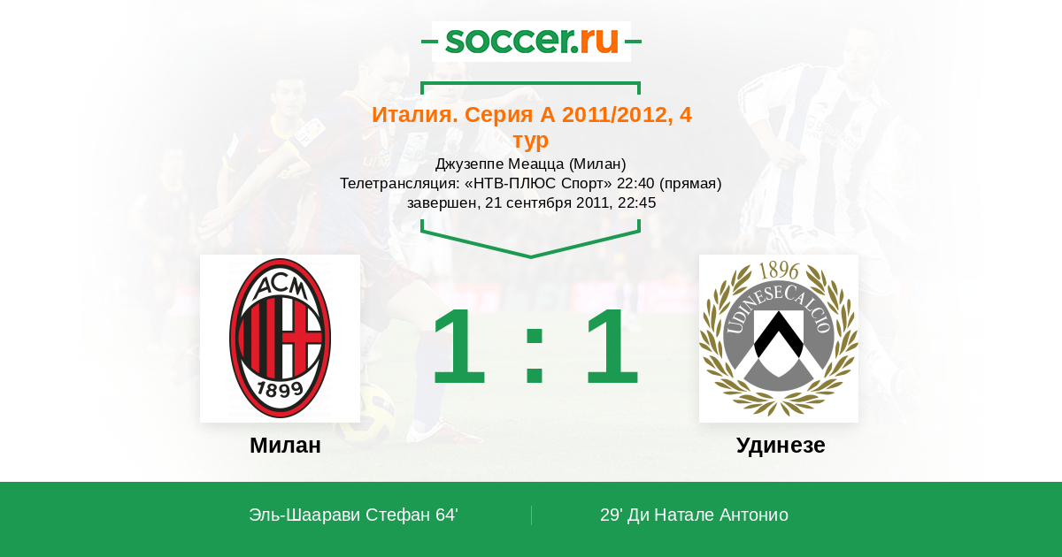 Протокол матча Милан против Удинезе